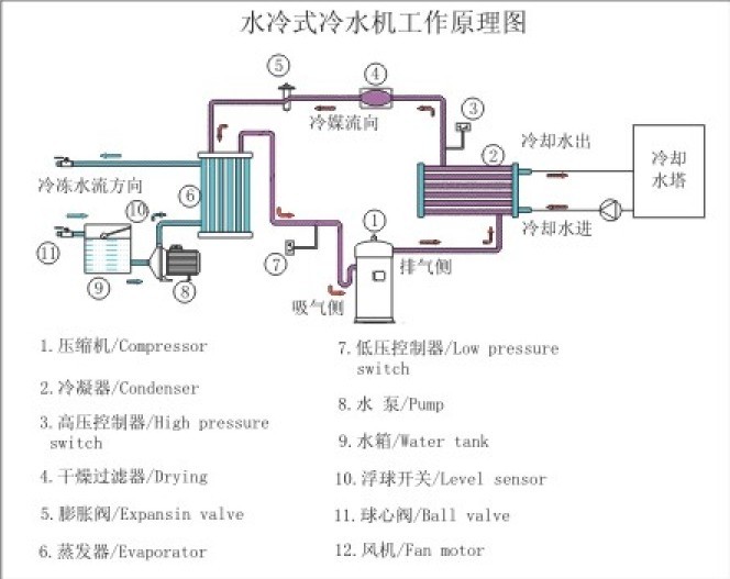 水冷式和風冷式冷水機的原理在于散熱方式不同。